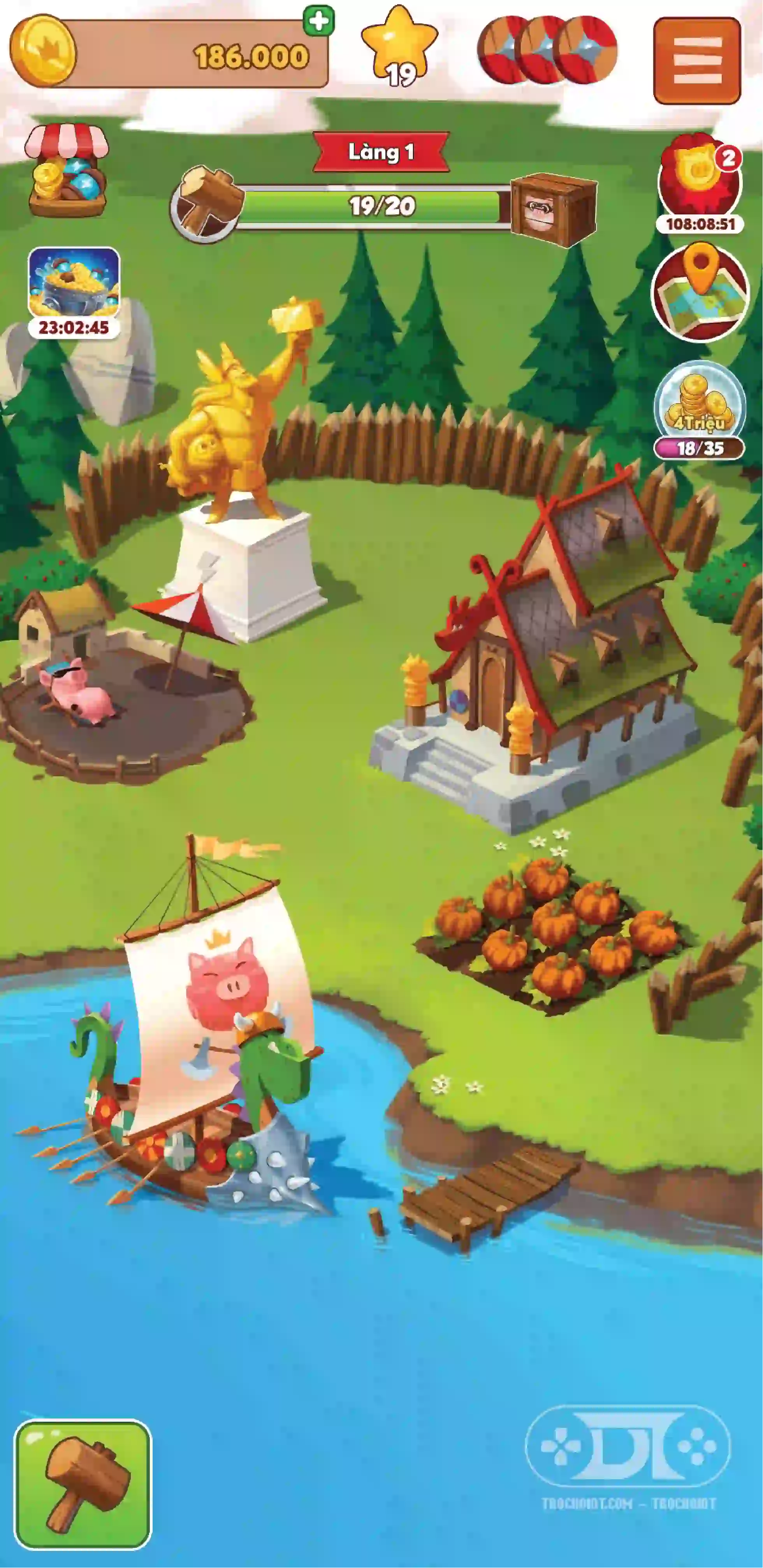 - Tiền vô hạn: Giúp bạn dễ dàng nâng cấp làng và mua vật phẩm mà không phải lo về số lượng tiền. Bạn có thể nhanh chóng xây dựng và cải thiện mọi thứ trong trò chơi.